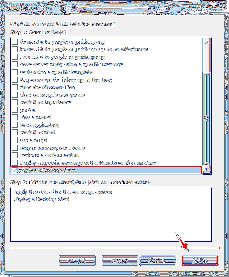 Sie müssen nur auf Regeln klicken > Regeln verwalten & Warnungen > Regel ändern > Regeleinstellungen bearbeiten > Klicken Sie auf die Schaltfläche Weiter, und Sie müssen die Anzeige einer Desktop-Benachrichtigungsoption aktivieren > Klicken Sie auf Ja > Weiter klicken > Fertig > Klicken Sie auf Übernehmen und auf OK, um die Änderungen zu speichern.